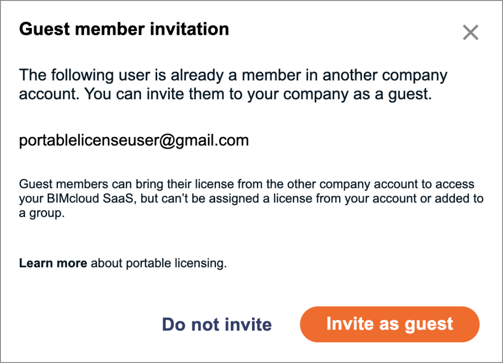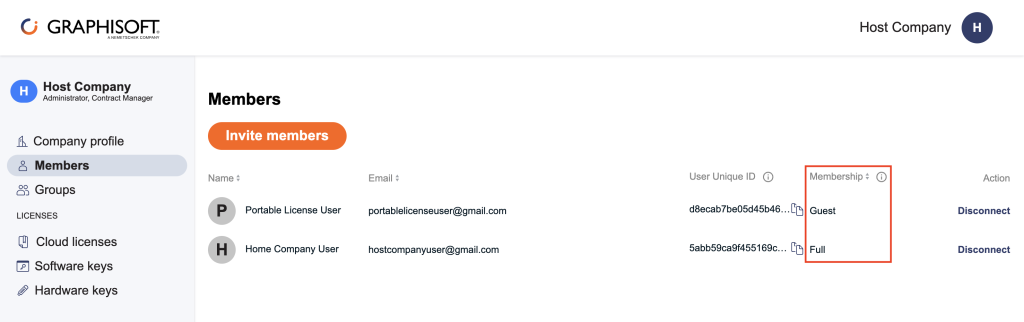 Αν το μέλος αποδεχτεί την πρόσκληση, αποκτά ρόλο Guest στο BIMcloud SaaS της Host Company.